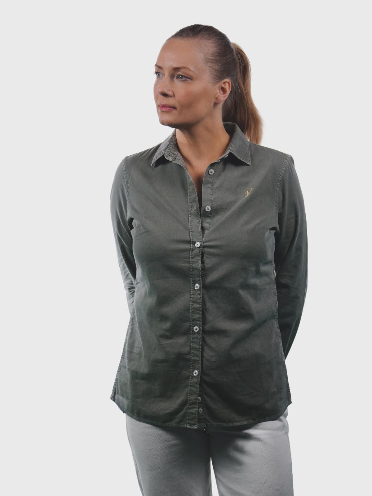 Damen Bluse Washed Pale Khaki